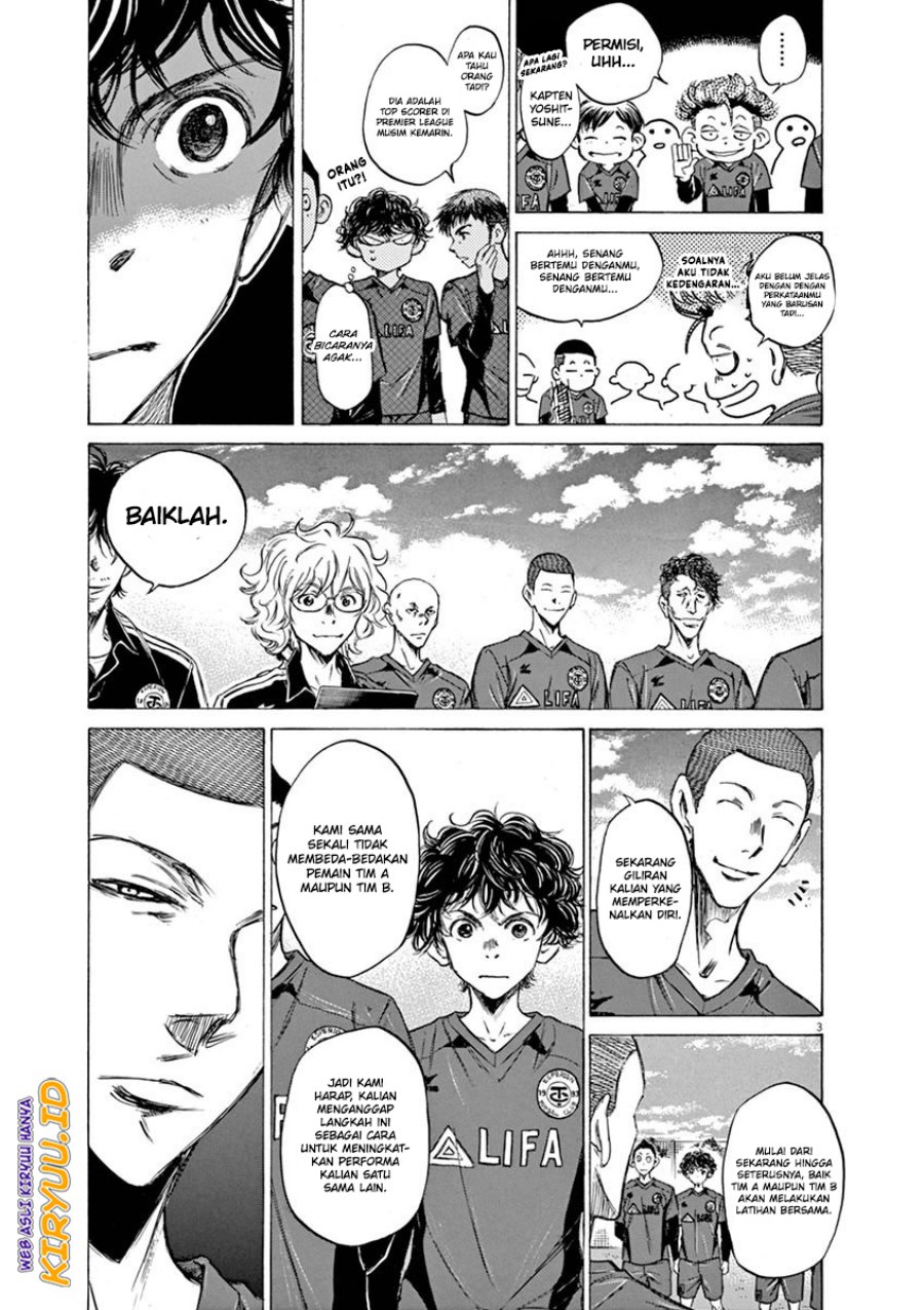 Aoi Ashito adalah murid kelas tiga SMP asal Ehima. Pemain muda berbakat yang memiliki kelemahan karena sifatnya yang terlalu terang-terangan. Pelatih tim muda Tokyo City Esperion, Fukuda Tetsuya,...