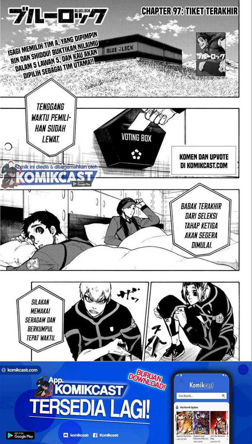 Yoichi Isagi kehilangan kesempatan untuk pergi ke kejuaraan sekolah menengah nasional karena dia mengoper ke rekan setimnya yang gagal mencetak gol dan bukannya menembakkan bola sendiri. Isagi...