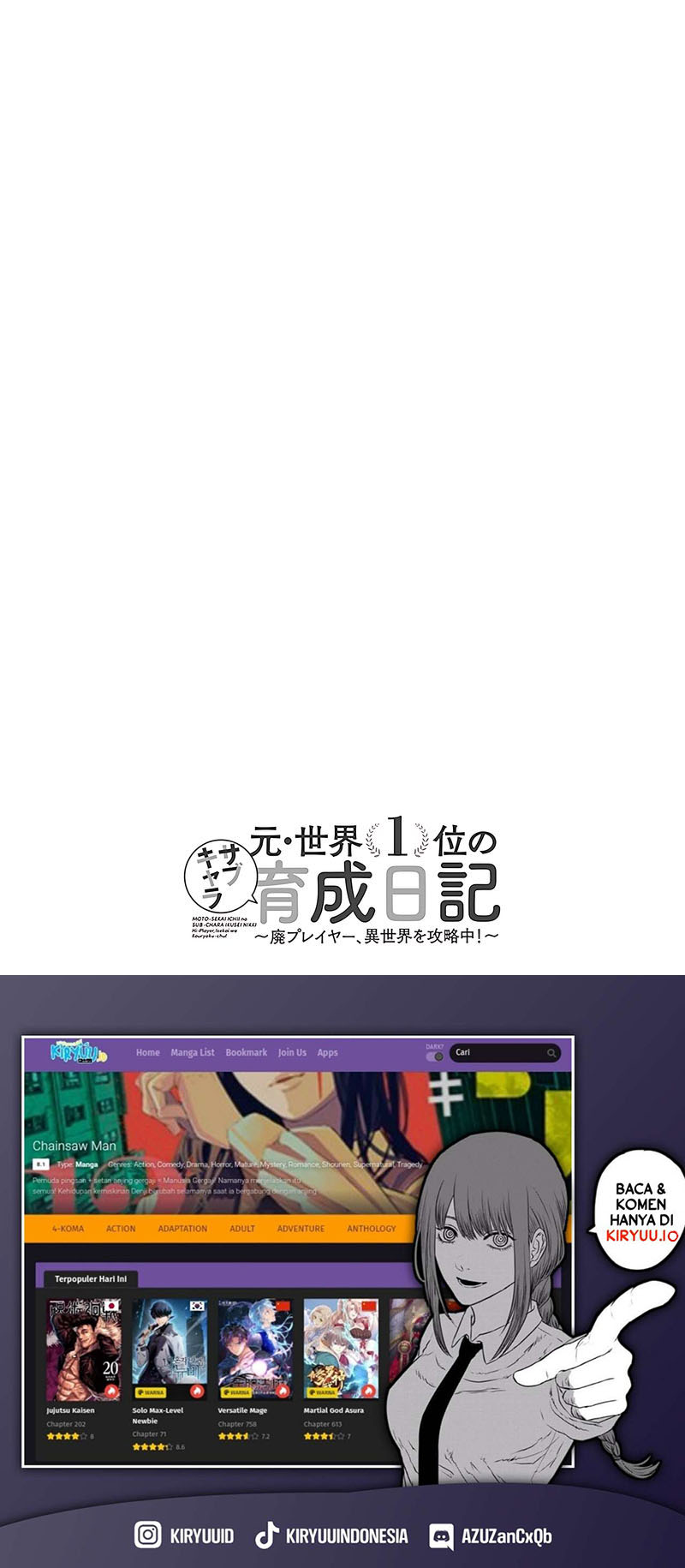 Sang protagonis, yang jarang bersekolah selama masa SMP dan SMA-nya, menganggur bahkan setelah dewasa. Dari pagi hingga malam, ia hanya bermain video game. Baginya, yang menduduki peringkat pertama...
